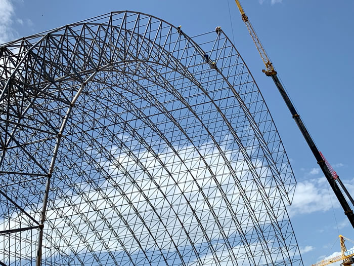(2)网架加工前应对现场尺寸进行复测,确认无误后方可进行加工、安装;网架制作、运输、安装应遵守《空间网格结构技术规程》JGJ7-2010、《钢网架杭州螺栓球节点》JG/T 10-2009、《钢网架杭州螺栓球节点用高强度螺栓》 GB/T 16939-2016、《杭州钢结构杭州工程杭州施工规范》 GB50755-2012、《杭州钢结构杭州工程杭州施工质量验收标准》 GB50205-2020。